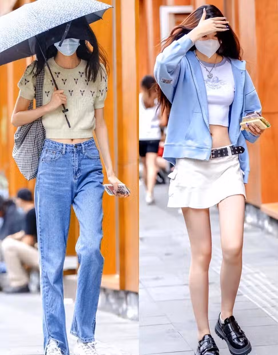 時尚街拍越來越清涼,春夏很火的一種搭配,露腰+露腿好時髦