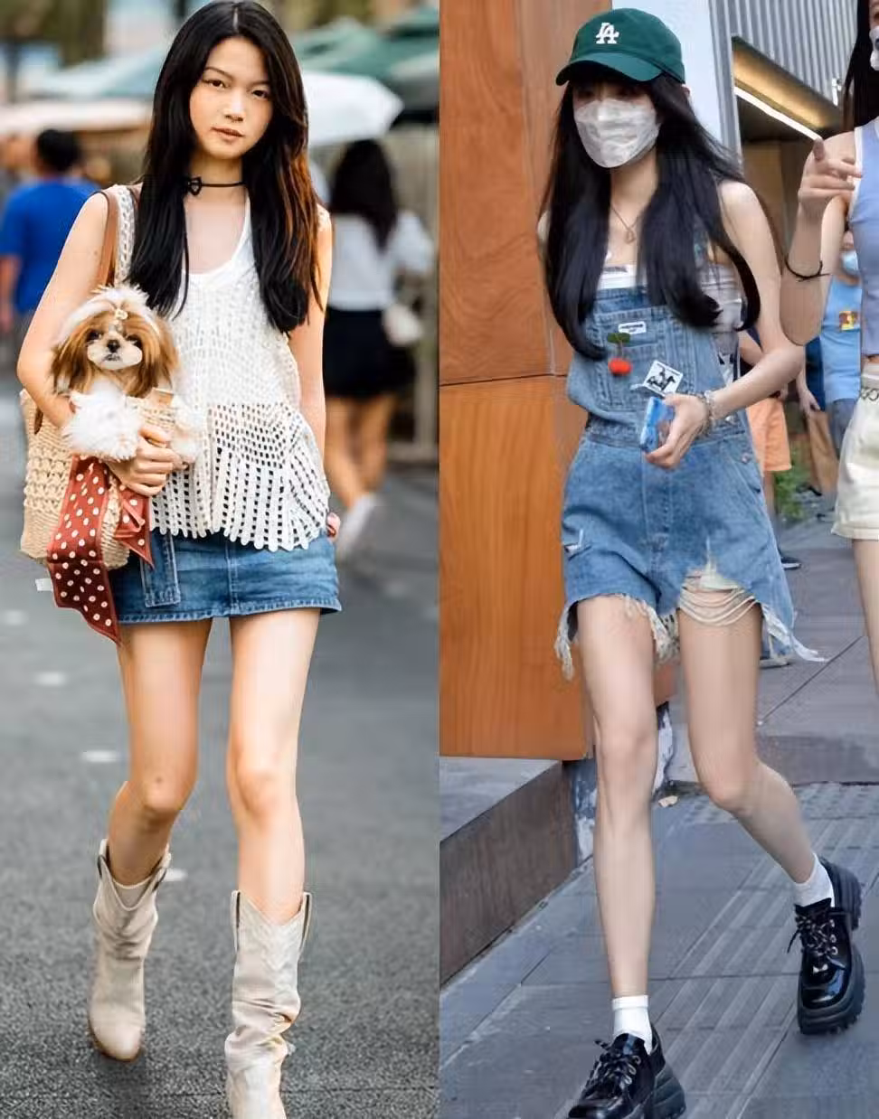 時尚街拍越來越清涼,春夏很火的一種搭配,露腰+露腿好時髦