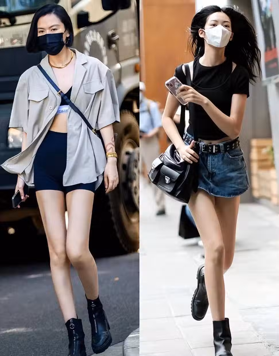 時尚街拍越來越清涼,春夏很火的一種搭配,露腰+露腿好時髦