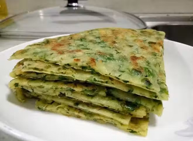 3.平底鍋熱少許油,油熱後,倒入麵糊,中小火煎,一面變黃後再翻面,兩面面熟透就可以了。