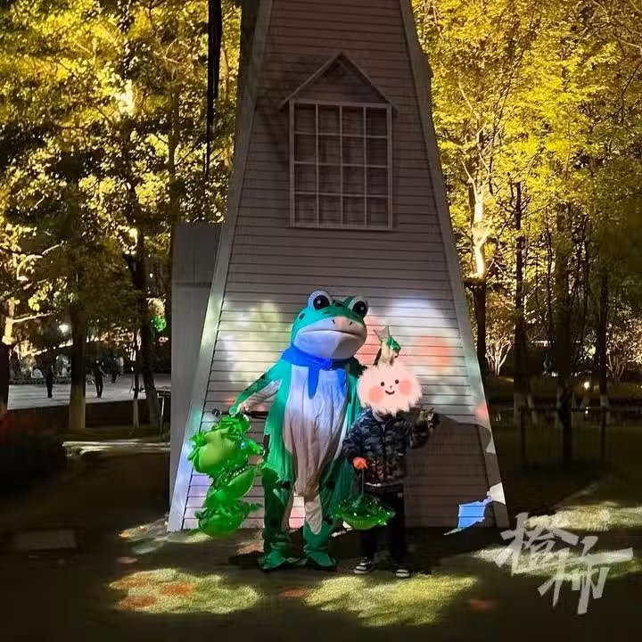 原本是有些現實且心酸的畫面,在配上青蛙服的萌感後,經過短視頻平台的發酵,就變得有些喜感。穿梭在夜市的「賣崽青蛙」,不僅是「販賣快樂」的城市風景線,也是社交媒體上的刷屏頂流。