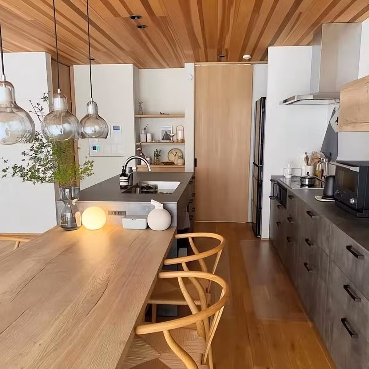 和很多家庭一樣,都是客餐廳一體的設計,有種「一鏡到底」的既視感。如此一來,不僅視覺效果更和諧,而且還能節約空間,一舉兩得。