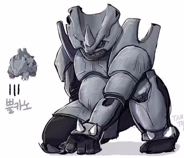 獨角犀牛(日文︰サイホーン,英文︰Rhyhorn)是地面屬性和岩石屬性神奇寶貝,全身為灰色。全身覆蓋著刀槍不入的灰色鎧甲,用於保護自身和攻擊敵人,背部的一塊鎧甲帶有弧形的缺口。頭部有一個小小的角,四肢較短,有一個很小的尾巴。