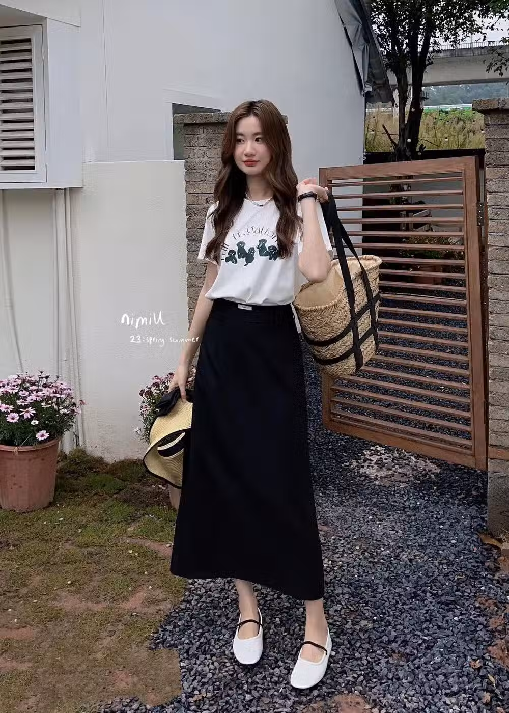 一件T恤,被賦予了這個季節最舒適的代表,它可以有不同的搭配,在溫柔風的穿搭里,你可以毫不猶豫地選擇一條半裙,來裝點夏日的通勤時刻。