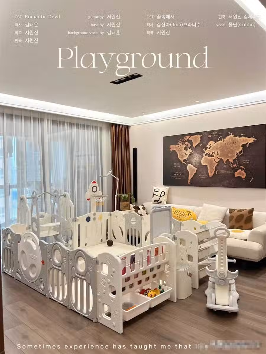 另外,屋主考慮到自己的孩子馬上就要會爬了,就添置了一款爬爬墊和圍欄,給他用來自由活動。