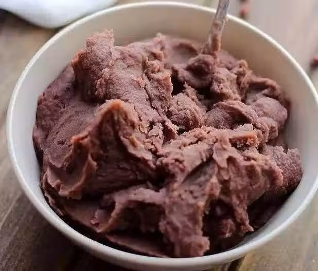最後關火後,利用餘溫再翻拌翻拌,盛出來裝碗,就是不錯的紅豆沙了。如果家裡沒有破壁機,那就用紅豆直接下鍋用黃油和白糖翻炒,這樣做出來的口感是大顆粒的,也還不錯,做包子也挺好吃,大家可以試試看。