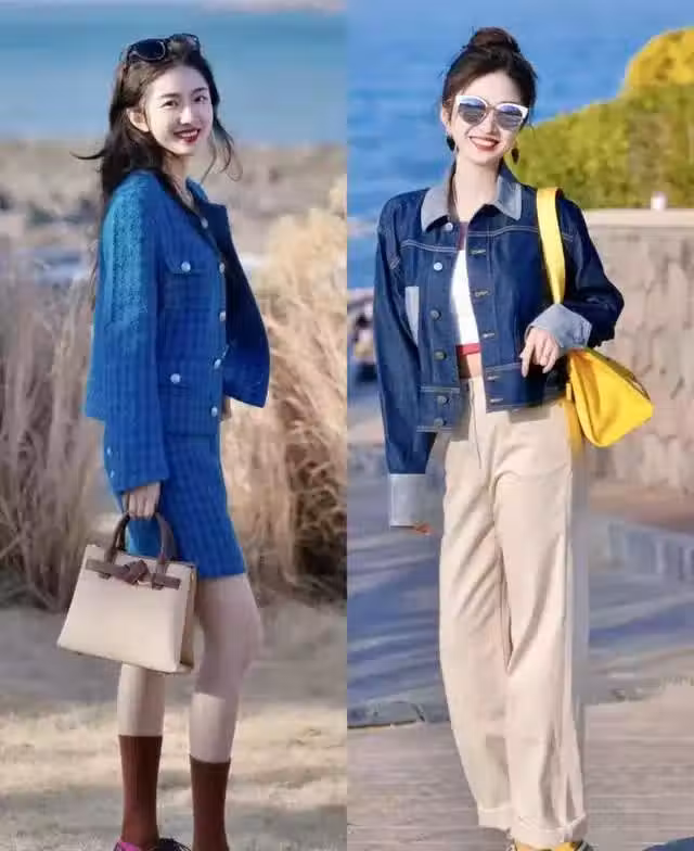 膚色不是很白皙的女生,那就選擇乾淨的淺色系來進行搭配,顯白又高級。比如藍色的牛仔衣,帥氣十足,裡面搭配白色的棉T,藍天白雲般的感覺,又清爽又活潑,關鍵是特別顯白。