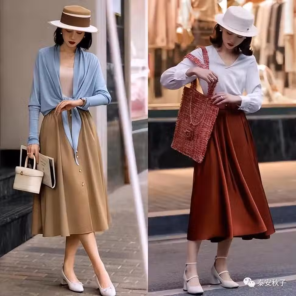 能將腰腹及腿部多餘的肉肉,輕鬆隱藏的經典高腰A字版型,與柔美、質感的修身小衫相互組合,在上身的瞬間,便召喚出專屬成熟女性的輕盈與浪漫。