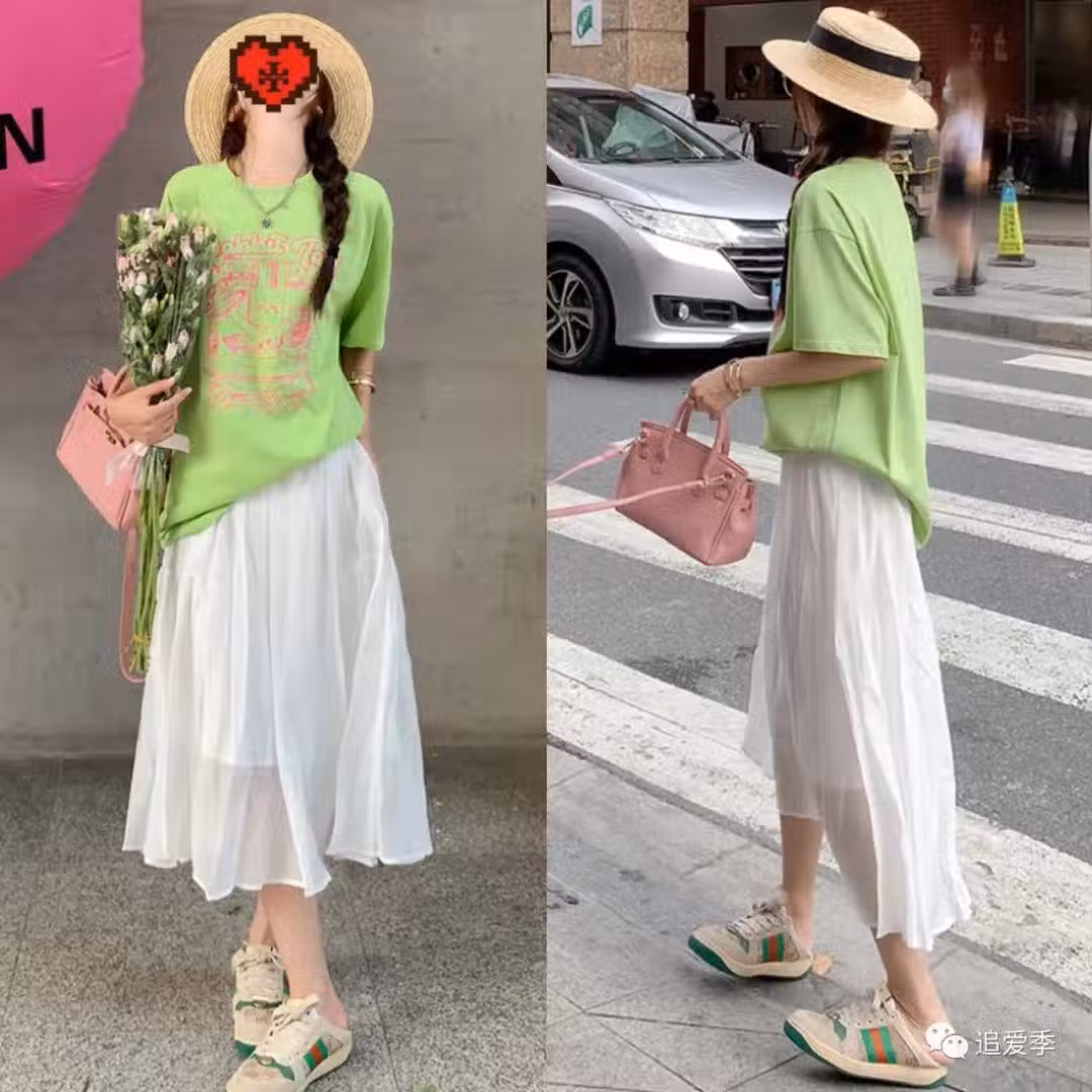 T恤+半裙=夏天的王炸組合,微胖女生換著穿,時髦一整個夏天
