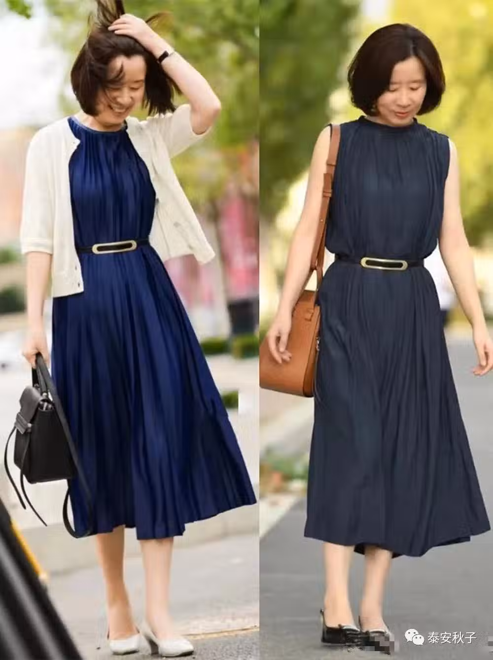 上圖中的這位博主,便是利用了優雅連衣裙的修身屬性,成功地將時尚與自身的優雅氣質,完美結合,讓年過半百的自己,變得更有自信心。