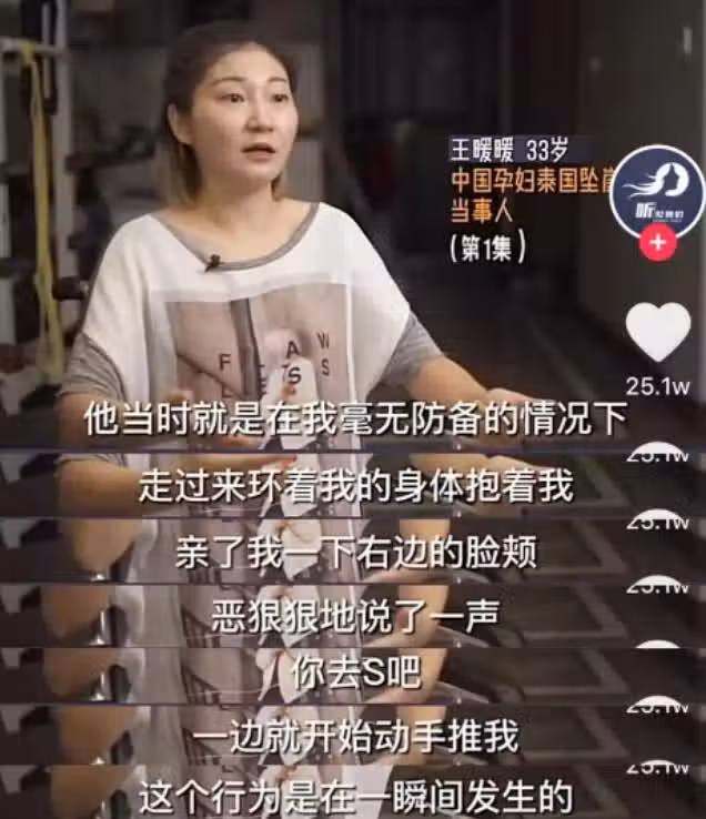 俞某從背後環抱著王暖暖的肚子,親吻了她的右臉,隨即用力一推,「你去死吧!」