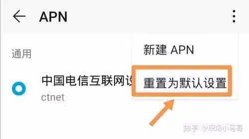 方法:設置——無線和網絡——移動網絡——接入點名稱(APN)——三個小豎點——重置為默認。