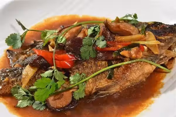 2、接下來鍋內燒油,然後把魚放進去,煎至兩面金黃。下麵把魚撥到一邊,把薑蒜放入鍋中,爆出香味,隨後再往裡面加上生抽,適量的食鹽,然後倒入足夠量的清水,開始燉就可以了。