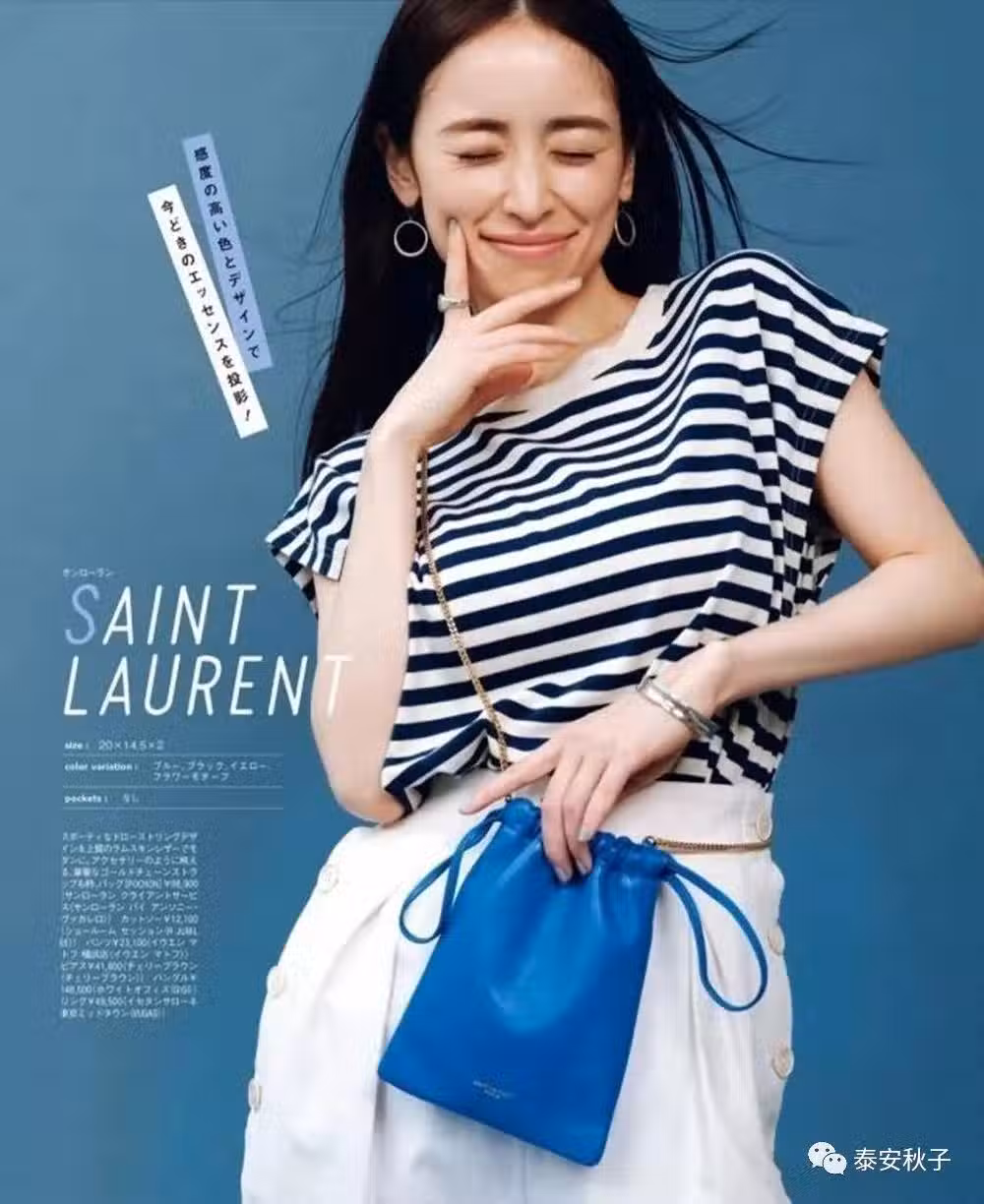 所以,向這種橫向條紋衫與高腰褲的疊穿組合,要上身體型略顯顯瘦一些的們,才能穿的好看。