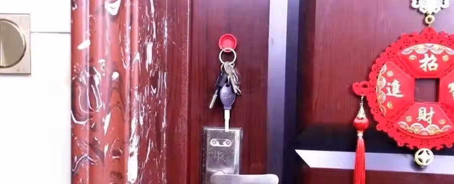 第四個方法:平時我們開門回家,這個鑰匙我們從外面拔出來後,直接插進房間內的門鎖裡面,然後再轉一圈,將門反鎖,鑰匙就不要拔出來了,讓它插在門鎖裡面,這樣非常的安全,如果有小偷想進我們家的話,鑰匙孔被堵住,他就很難破鎖進入。而且第二天我們出門上班時,鑰匙沒有拔出來,反鎖沒有解開的話,我們也是出不去的。那麼這個時候,只有將反鎖解開,然後把鑰匙拔出來,門才能被打開,所以這樣子我們的鑰匙就不可能被忘記了。不僅可以保證我們的安全,還能夠預防忘記帶鑰匙,非常簡單實用的小竅門。