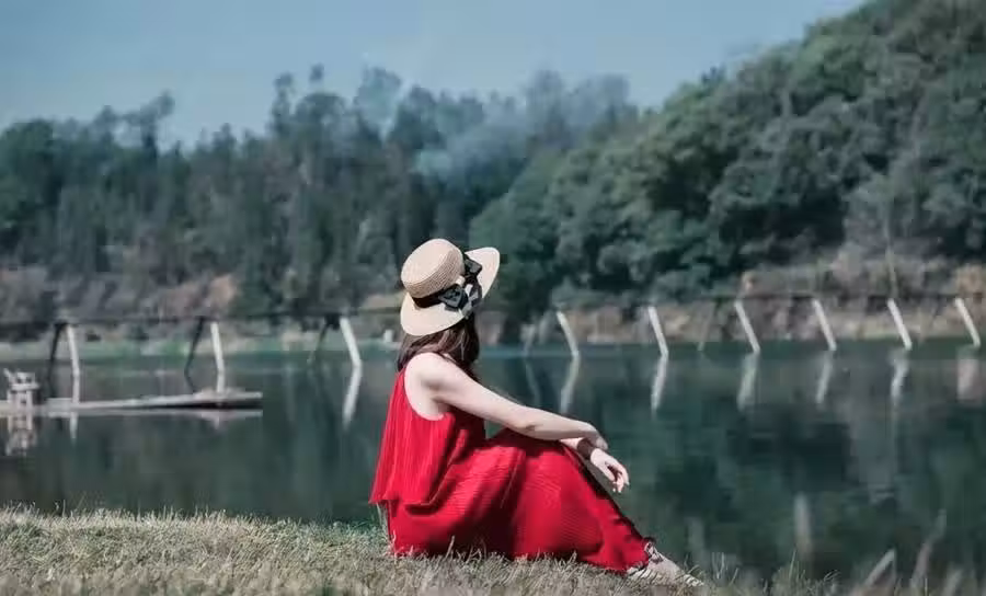 我們拍攝坐姿的時候,側身用手抱膝也是常用的姿勢。為什麼推薦多拍側身照?因為側身照人物看起來修長,如果正對鏡頭的話,人物相對來說就顯得扁平。