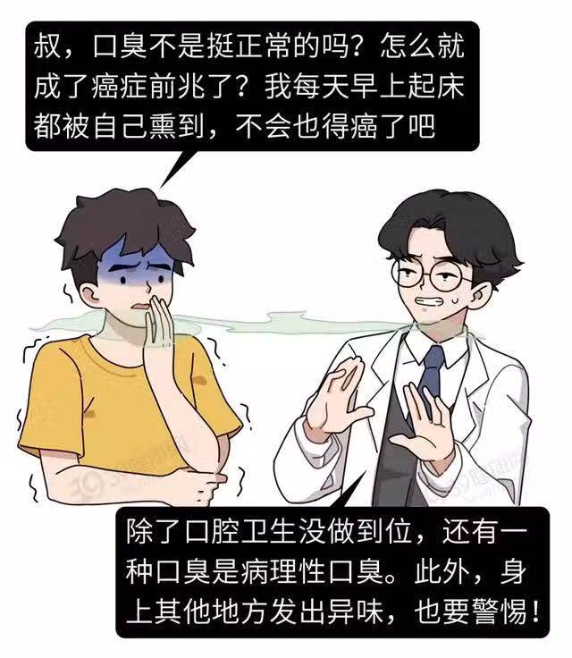 幽門梗阻、晚期胃癌患者會出現臭鴨蛋味口臭。