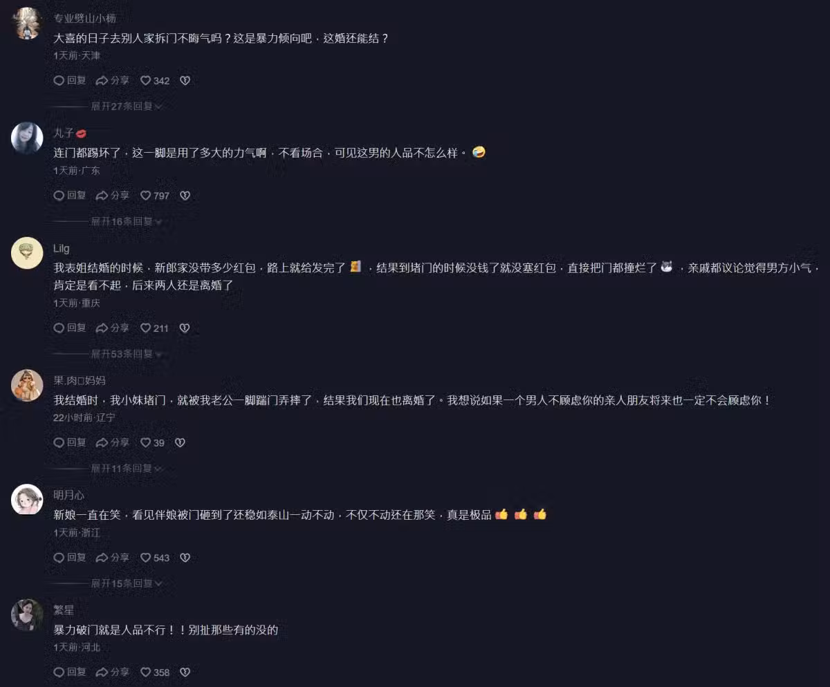 伴娘「擋門不給迎娶」給紅包才開門!伴郎竟破門而入「她直接噴飛」網看傻:新娘在幹嘛...
