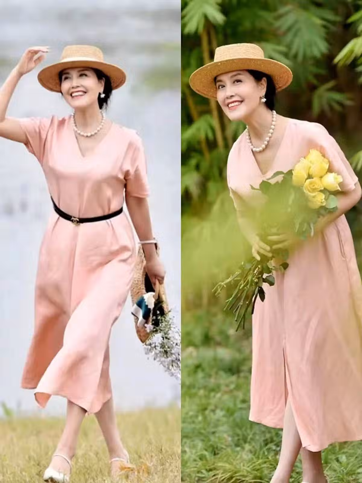 比如這位媽媽非常喜歡各種淺色系裙子,茱萸粉色、鵝黃色、白色或者淺藍色,這些裙子穿在身上,輕松年輕二十歲不說,還特顯溫婉氣質。