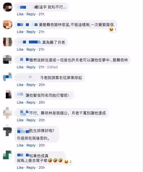 小卡上的願望是在太難實現,於是原po也在貼文中表示,「不要為難月老啦,祂只是個老人家。」另外她還極力為自己辯解,表示不是有意要偷看的,無奈這個願望實在是太顯眼了。不少網友看到後也都笑翻了,紛紛打趣說:「這輩子努力看看,來生總有機會的」、「說不定做夢可以」。還有人看到左下角「關聖帝君」後,表示「關公的眼神已經給答案了」,因為圖案上的關公眼睛細長, 表情看起來很無奈,似乎在拒絕這個無理的要求。