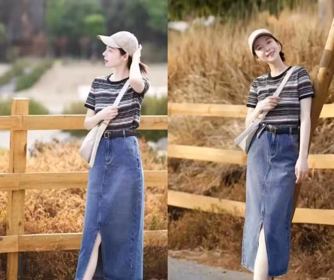 牛仔裙和牛仔褲一樣,沒有確切的年齡限制,成熟女性也可以用它來展現清新的穿搭風格。在搭配衣服方面,牛仔半身裙也是如此,沒有過多的要求。