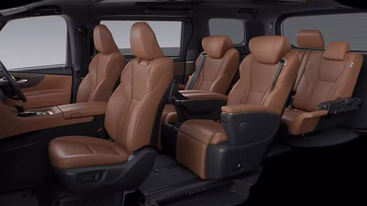全新一代的Alphard、Vellfire依舊會維持整體較為方正的車身輪廓設計,以保證其車內乘坐和頭部空間的寬裕程度,而這一點也可在今年4月發表的全新第二代Lexus LM的車身設計上得到驗證,畢竟Lexus LM與Toyota Alphard、Vellfire本來就屬孿生車款的關係。 內裝方面,作為全新換代的車型,新的Alphard、Vellfire自然採用了全新的內裝設計風格,前排我們能夠看到時下流行的大尺寸中控屏,後排則是更多地強調豪華氛圍,包括真皮座椅、菱形紋路的真皮門板、JBL音響,以及氛圍燈等。