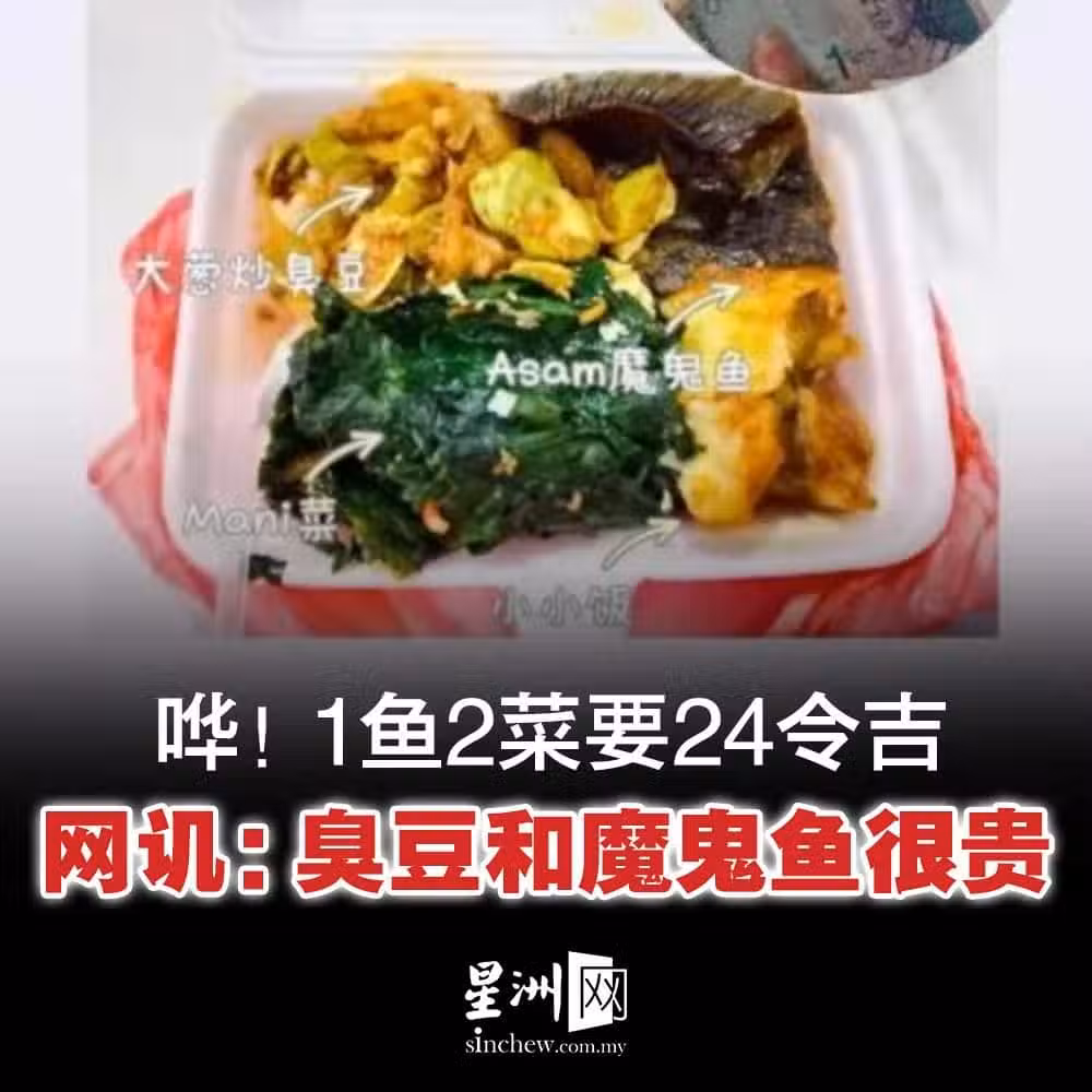 女投訴1魚2菜要24令吉很貴 網譏:臭豆和魔鬼魚很貴