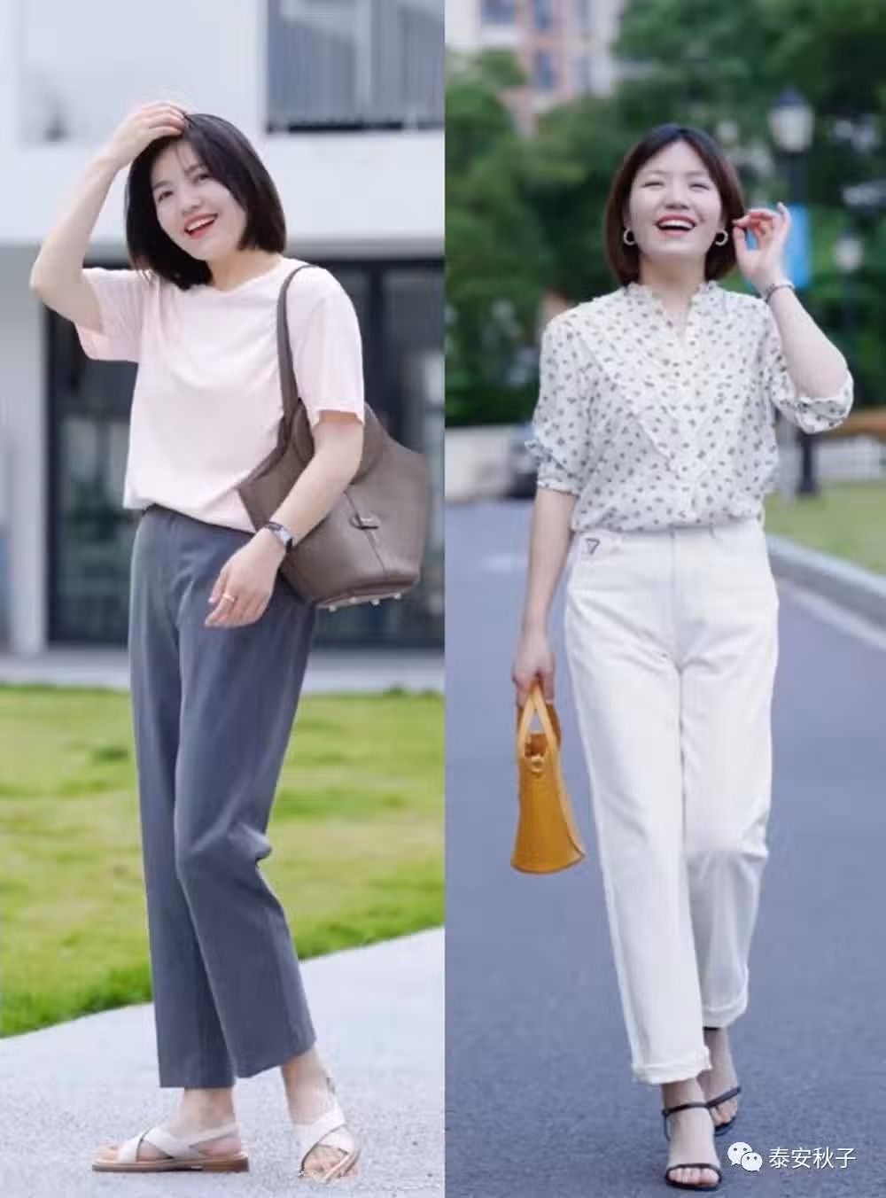 說實話,微胖型身材的女人,穿直筒褲會比穿肥大休閒褲更遮肉、顯瘦。