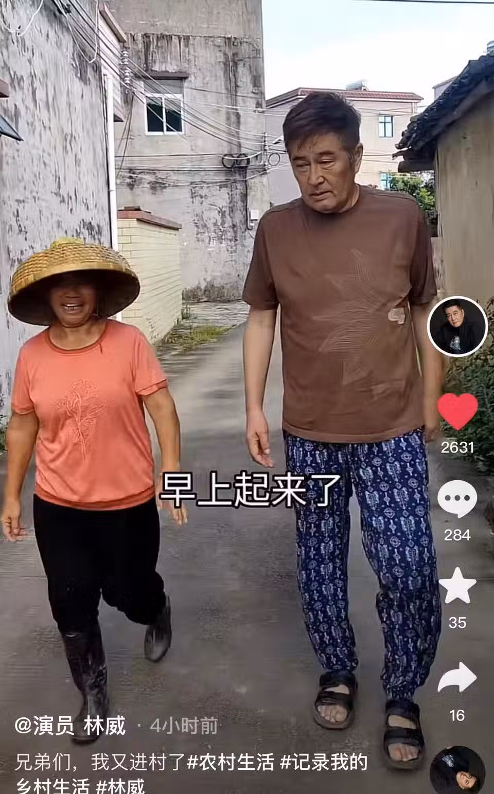看樣子是暫居在廣東,體驗當地的農村生活,不過這入鄉隨俗的林威可是一點明星樣子也沒有了。