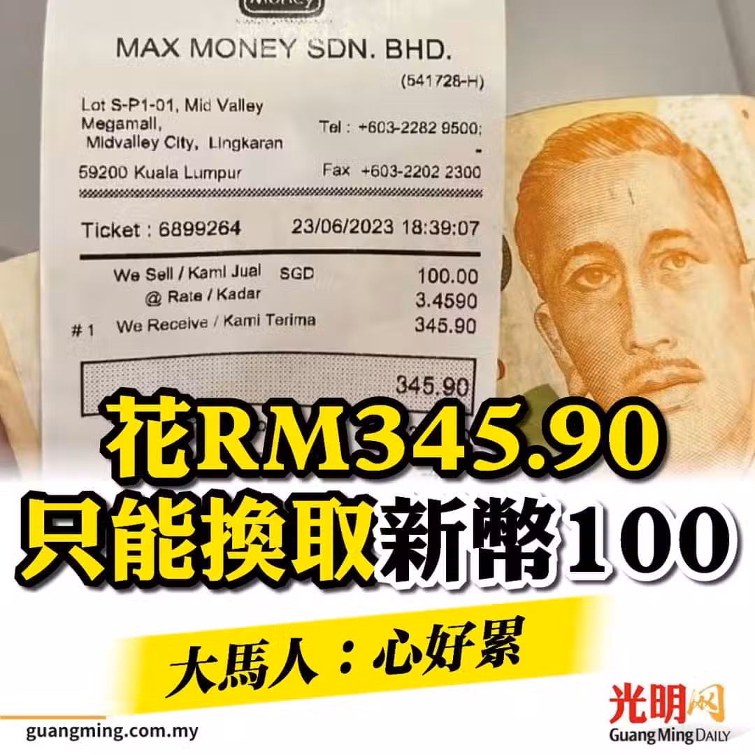 根據照片顯示,該市民是在本月23日到谷中城購物商場兌換新幣,當時馬幣兌美元開盤走低,跌破4.67關口,再刷新7個月最低,而馬幣兌新元匯率開市報3.4614,截至下午5時最低達3.4714。