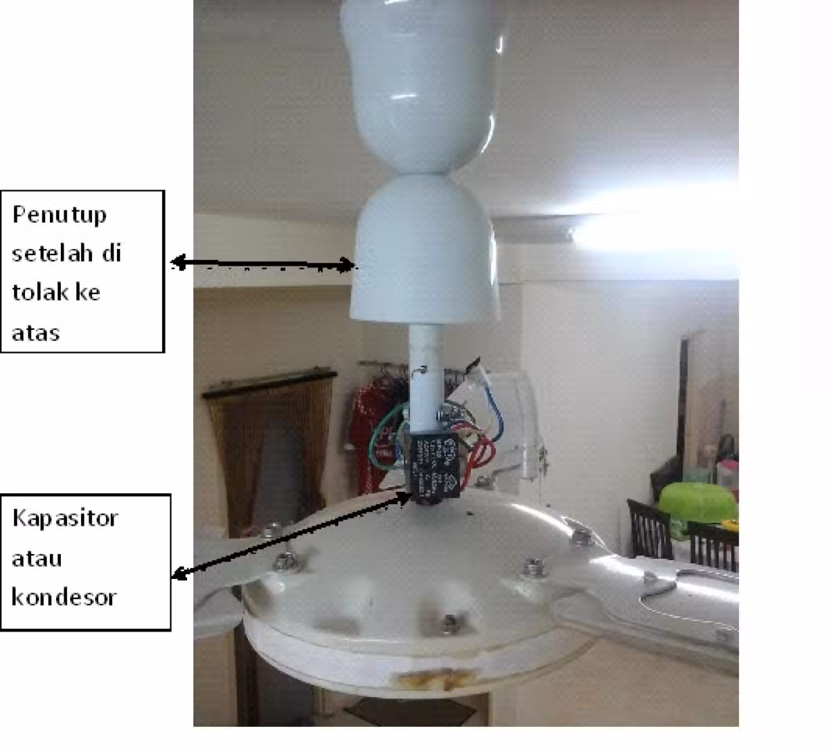 2. 推開風扇蓋之後,你就可以看到風扇的內部裝置。 注意看那個黑色的那個方形物體——這個小東西就叫做電容器(Capacitor)啦。