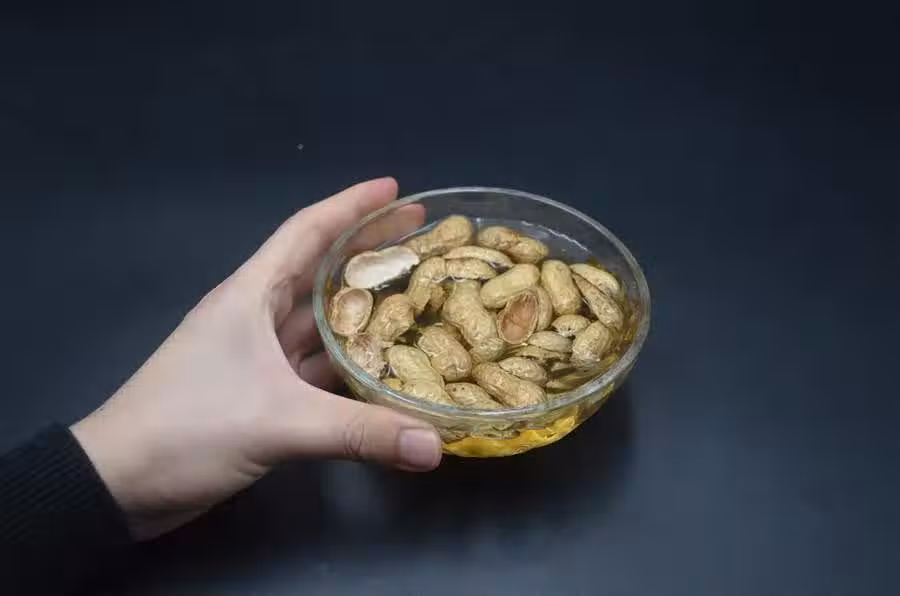 其實,我們可以先將吃剩下的花生殼放放碗裡,並且倒入水,讓花生殼發酵一個星期。