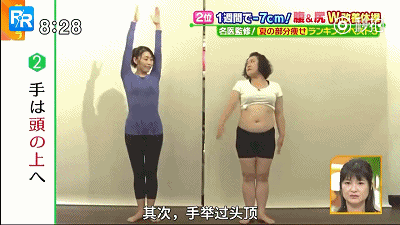 雙手舉過頭頂,雙掌合十,保持整個身體直立,收腹向頭頂方向延伸脊柱。