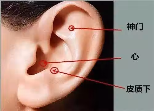 我就在他的耳朵上找到興奮點,發現此處有突起,而且剛一點,他就說特別疼。我就給他貼了一顆芥菜籽,又點按了1分鐘。如果芥菜籽不太好買,也可以用王不留行籽。