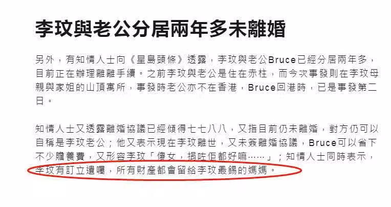 港媒表示李玟與老公分居兩年多,但目前他們仍舊處於沒有離婚的狀態,而且李玟的老公是加拿大富商,其個人身價突破百億。