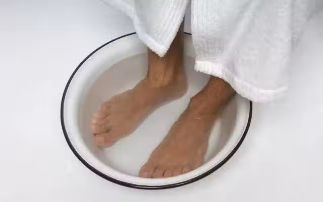 將小蘇打倒進水盆里,用來泡腳,大概20分鐘,然後再用清水洗乾淨。