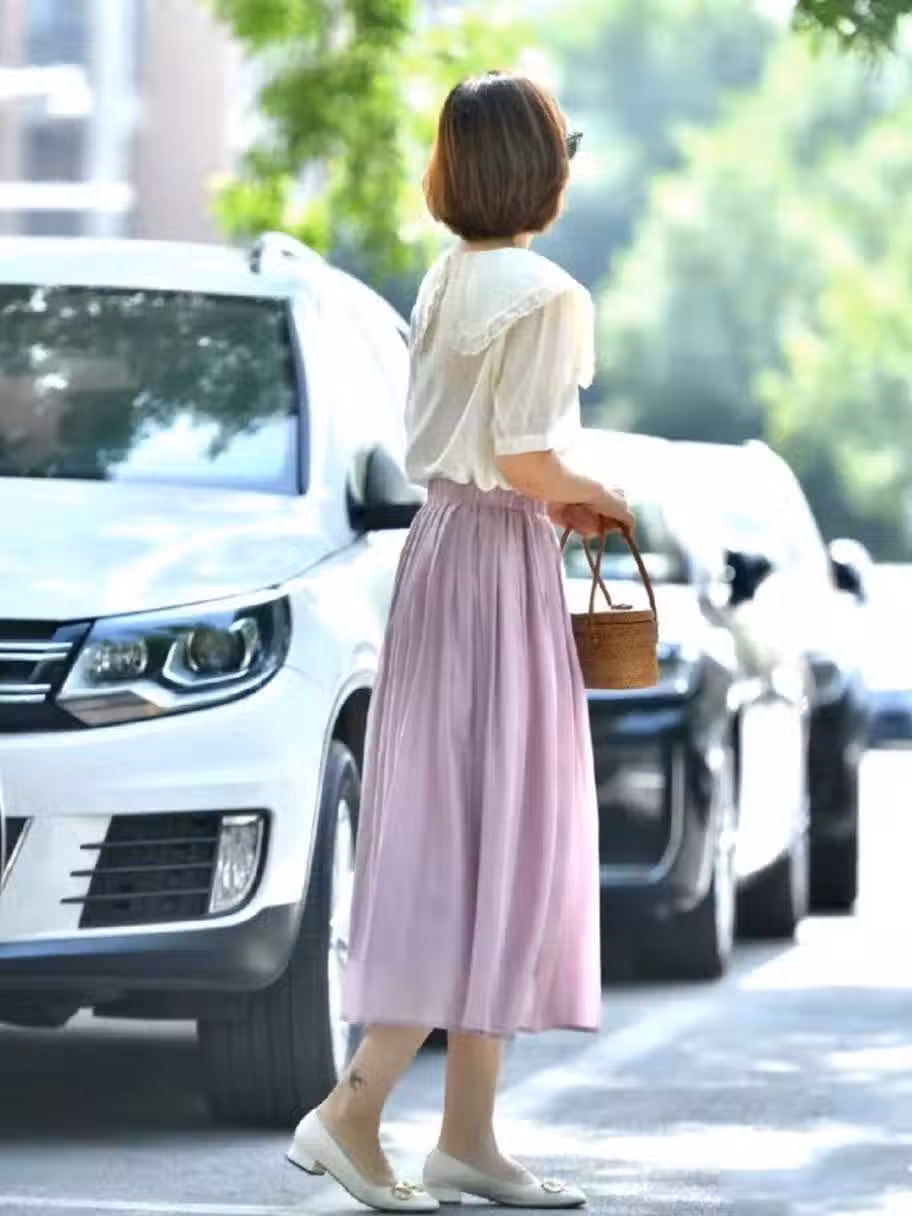 低粗跟尖頭鞋穿起來穩穩當當,非常適合用來營造溫柔又有力量感的熟齡look。