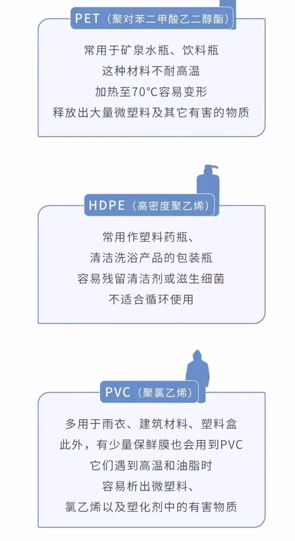 塑料產品上一般都會有使用說明,要注意細細查看每一條,如 塑料製品的使用溫度和是否能放入冰箱、微波爐等。