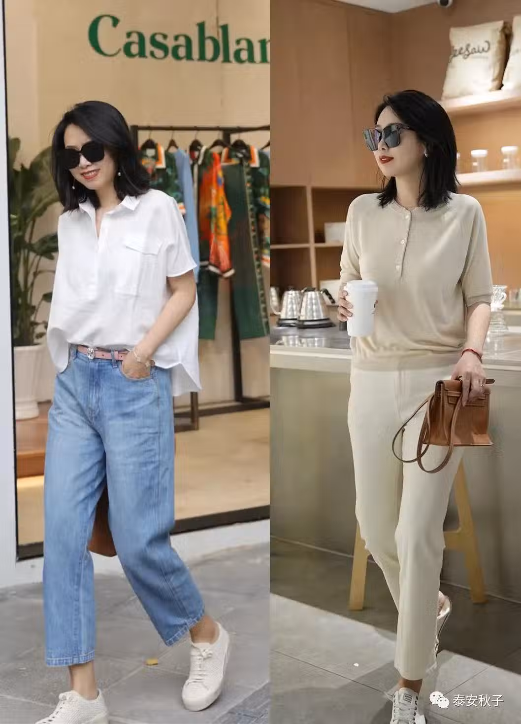 線條利落顯瘦,不挑人的高腰直筒褲,一直是中年女人的心態摯愛。