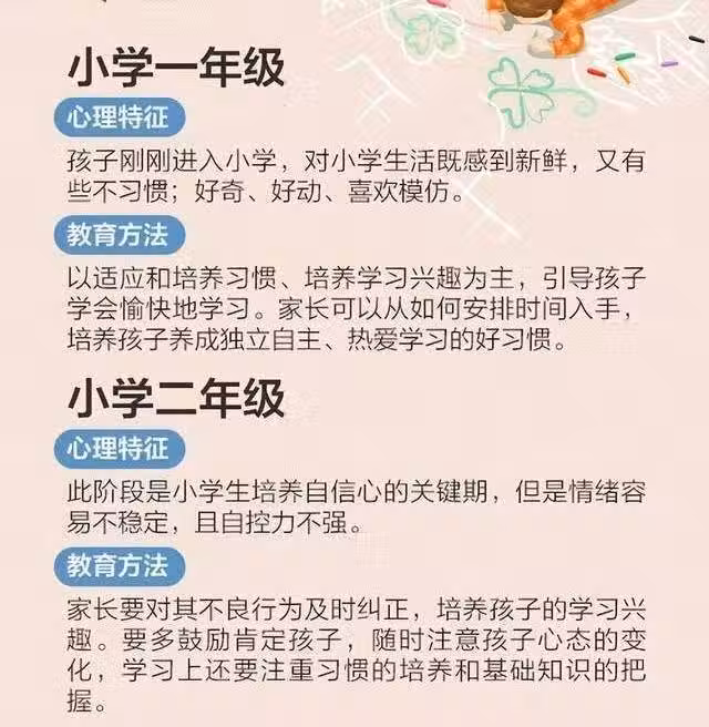 小學一年級到小學二年級,孩子在不同階段不同心理特徵和養育方法,供父母們參考。