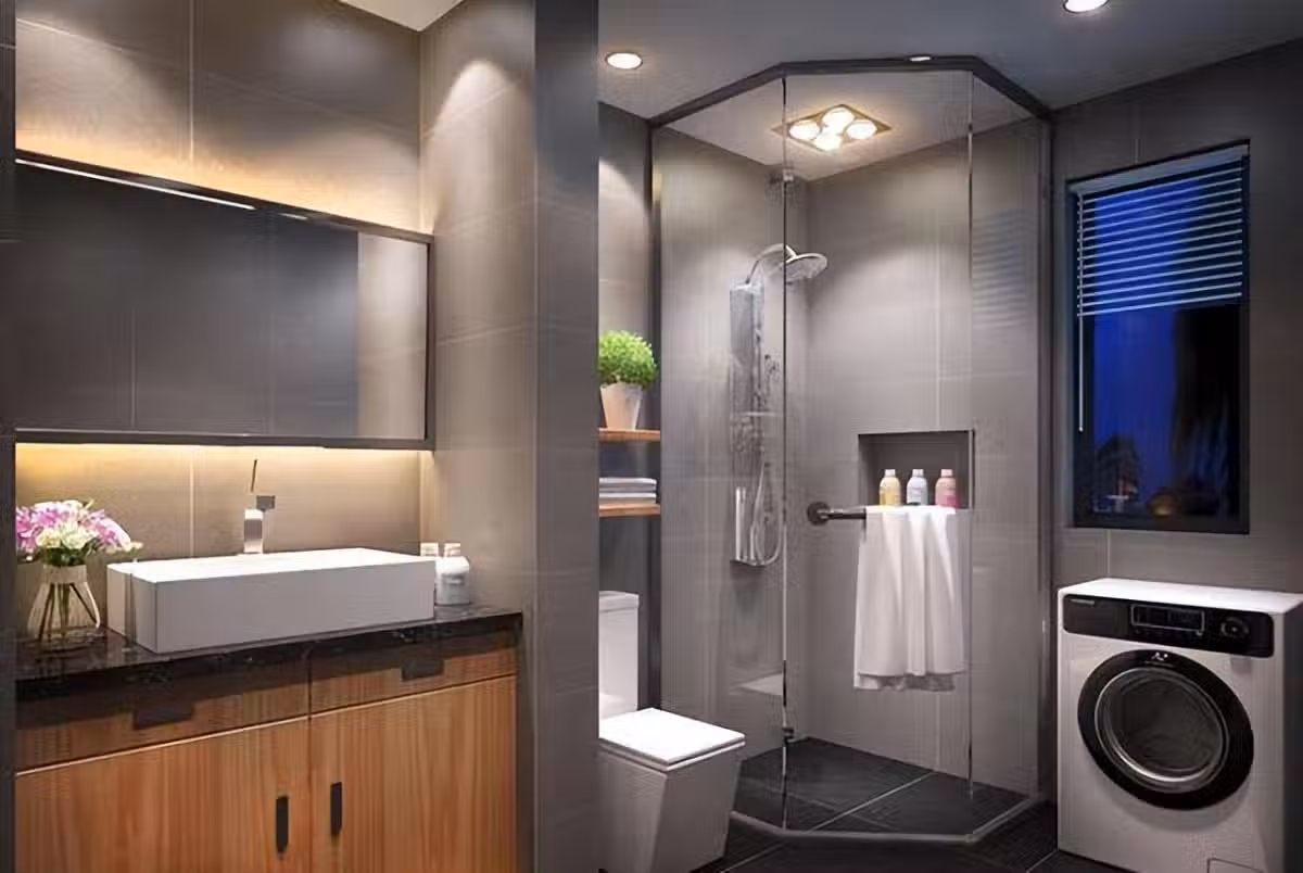 如果你家要是在這裡設計上玻璃淋浴房的話,空間直接被壓榨到很小,導致進去都沒有下腳的地方了,整體的空間看著十分的壓抑,用著自然不會特別順心。