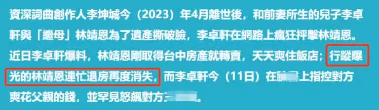根據台媒的爆料內容,說林靖恩死於某酒店附近的小巷裡面,疑似就是她居住的那處酒店。在去世的消息曝光之前,台媒還曝光了林靖恩失蹤的消息,故事線確實串聯起來了,但並沒有拿出確鑿的證據。