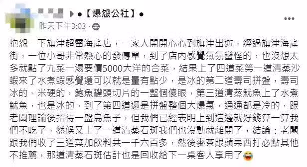 全家11口到旗津吃海產,叫價5000塊「連4菜都冷的」他客火大直接走人,結賬金額曝光:真的超雷!