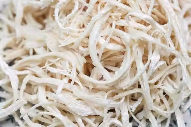 2、撕成雞絲,盛在碗里,黃瓜、胡蘿蔔擦絲,把雞絲、黃瓜、胡蘿蔔、蒜末、花生米、熟芝麻都倒在一起,然後往裡面加上適量的鹽、雞精、香醋、生抽、辣椒油,戴上手套抓拌均勻,開吃。