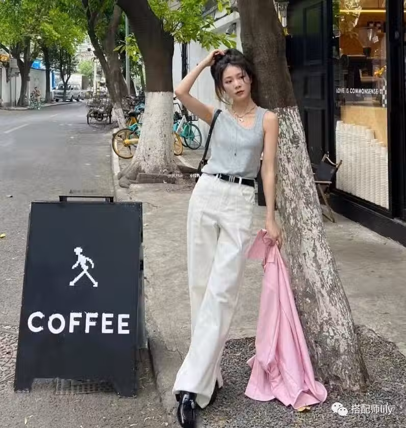 亞麻材質的褲子,最適合悶熱感的夏季了,完全不用擔心會顯得悶熱啦,加上寬鬆的版型,既可以巧妙遮掩腿部的缺點,又能輕鬆實現顯瘦,腰間還特意增加了一根黑色腰帶,強調了腰身,又打造出利落感,對於身材也進行了一定的修飾。