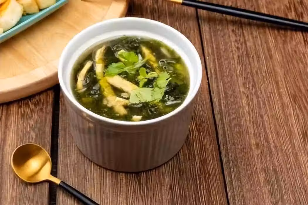 所需食材有:海菜、豆腐、雞蛋、姜、食用鹽、食用油、胡椒粉、雞精、枸杞。