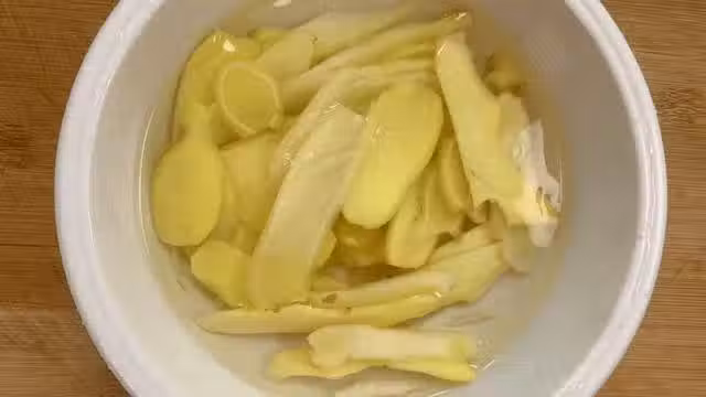 1、做薑糖片盡量買一些鮮嫩的生薑,吃起來辣味不那麼重,口感也會好一些。今年生薑的格外貴一些,大概在10元一斤。準備好的生薑先用清水把表面的泥沙沖洗干凈,表皮用去皮器去掉薄薄的一層,放在案板上把它切成薄片,最後再清洗幾遍裡面的辛辣味。