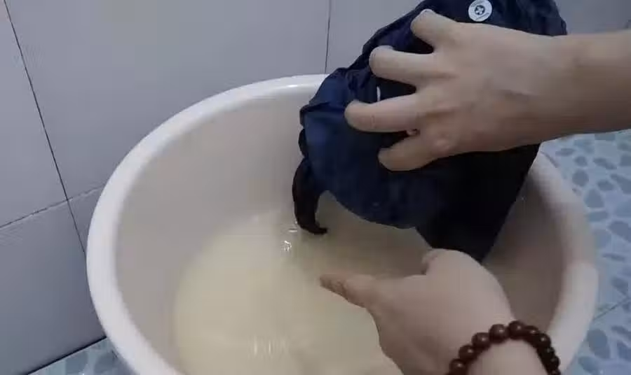大家可以看到,像這種牛仔衣物或者是新買來的衣服,都會出現這種褪色的情況。那平時我們為什麼會褪色呢?一是因為它的衣服固色不行,二是我們直接用洗衣液或者是洗衣粉洗了之後,它就會出現這種褪色的情況。那正確的做法,就是我們應該拿肥皂或者是香皂來先將衣服清洗一遍。