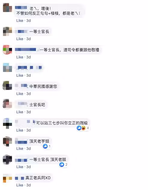 不過,後來又有網友貼出早期的軍階表指正,這其實不是一等士官長,「這是上士臂章啦!士官長是紅底的,那個年代稱『紅標』」、「舊型上士」、「老伯退伍時應該是上士」。雖然最後證明了,老伯伯的階級沒有大家想像中的那麼高,但曾經為國家付出、貢獻的精神,已經很值得大家敬佩了,為此也有人說,「管他是甚麼長,看到老人還在第一線衛國,你都得立正站好並且敬禮!」