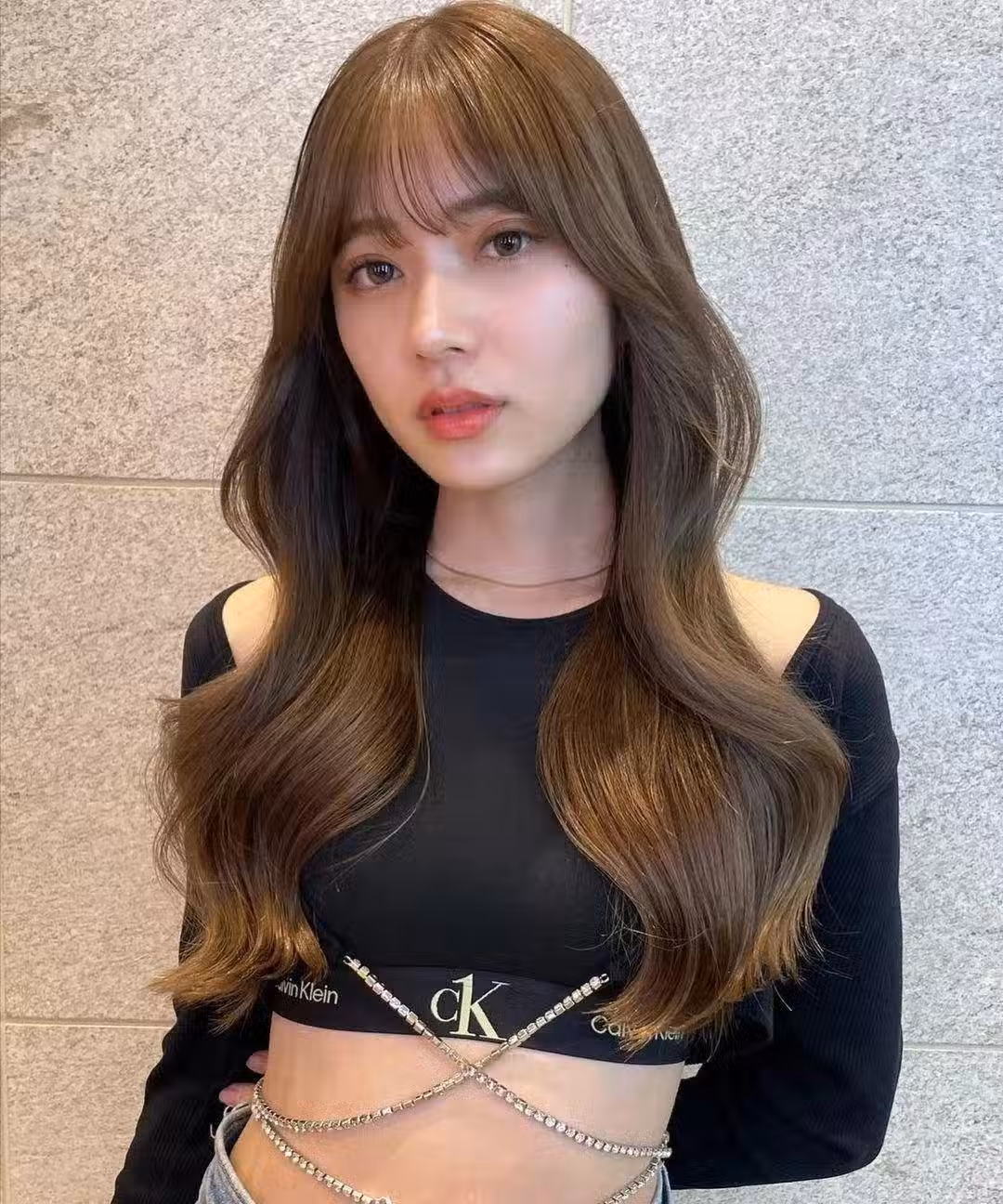 這款八字劉海可以與長卷發更緊密的貼合在一起,重點遮擋住了太陽穴的區域以及一小部分的顴骨,用來讓臉部曲線顯得更加緊致。